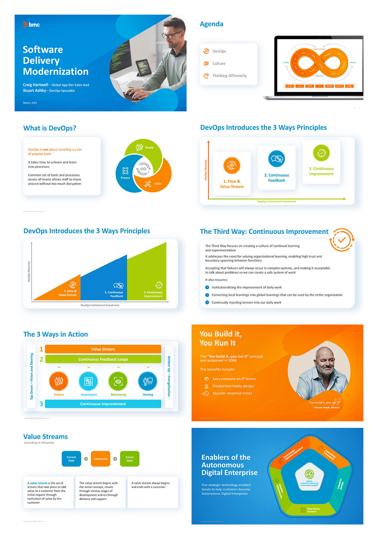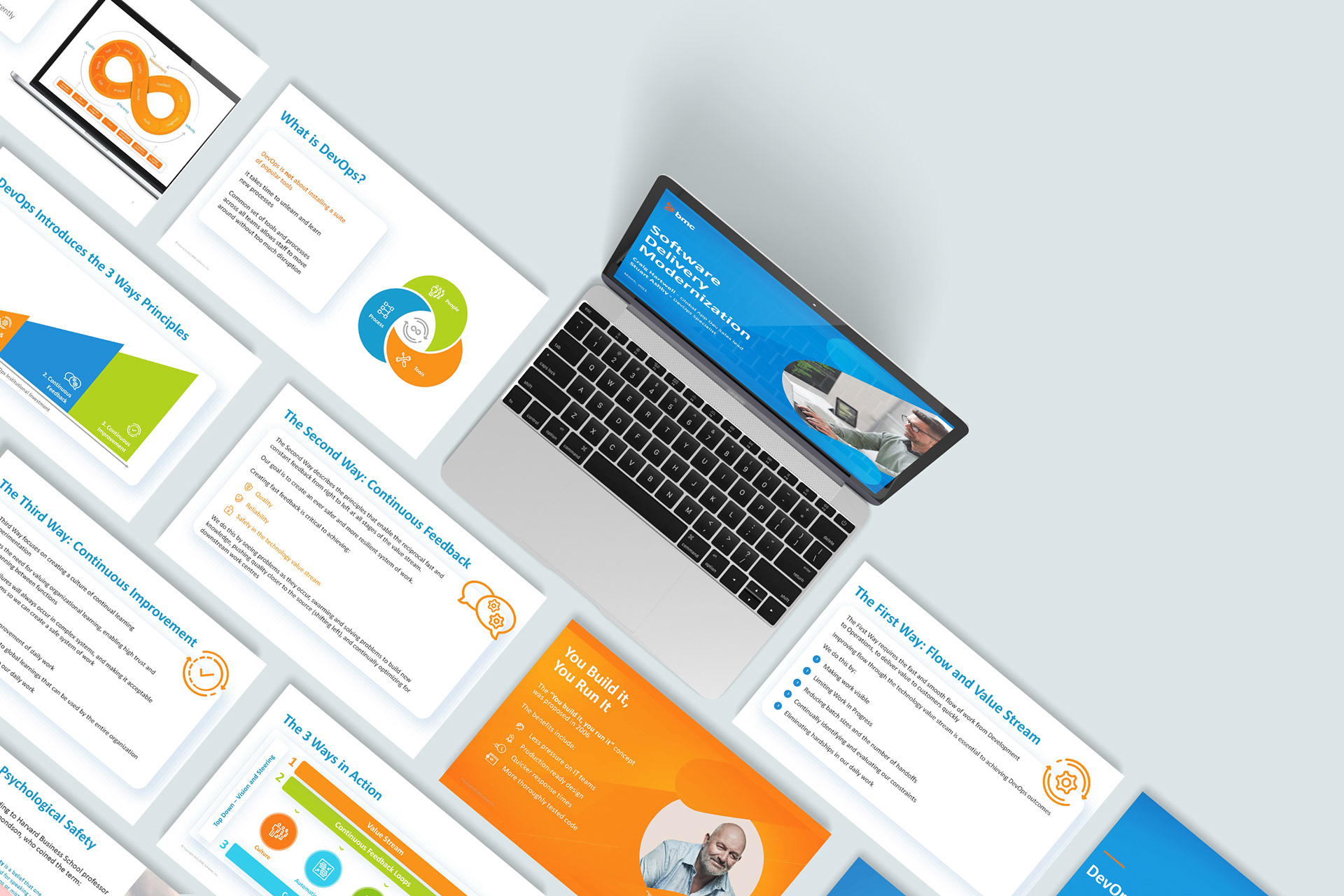 Powerpoint slide deck design and infographic for the BCM – Compuware merger. These new slide decks were created following a rebranding of the company.