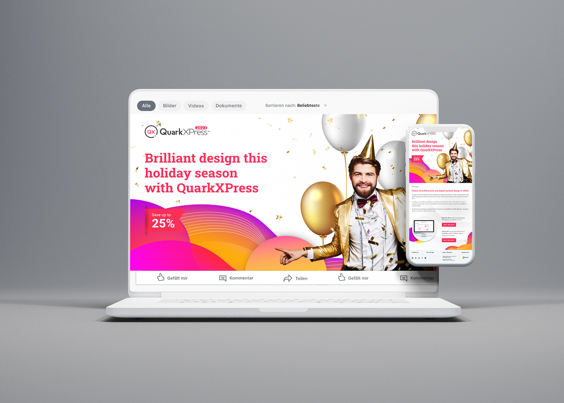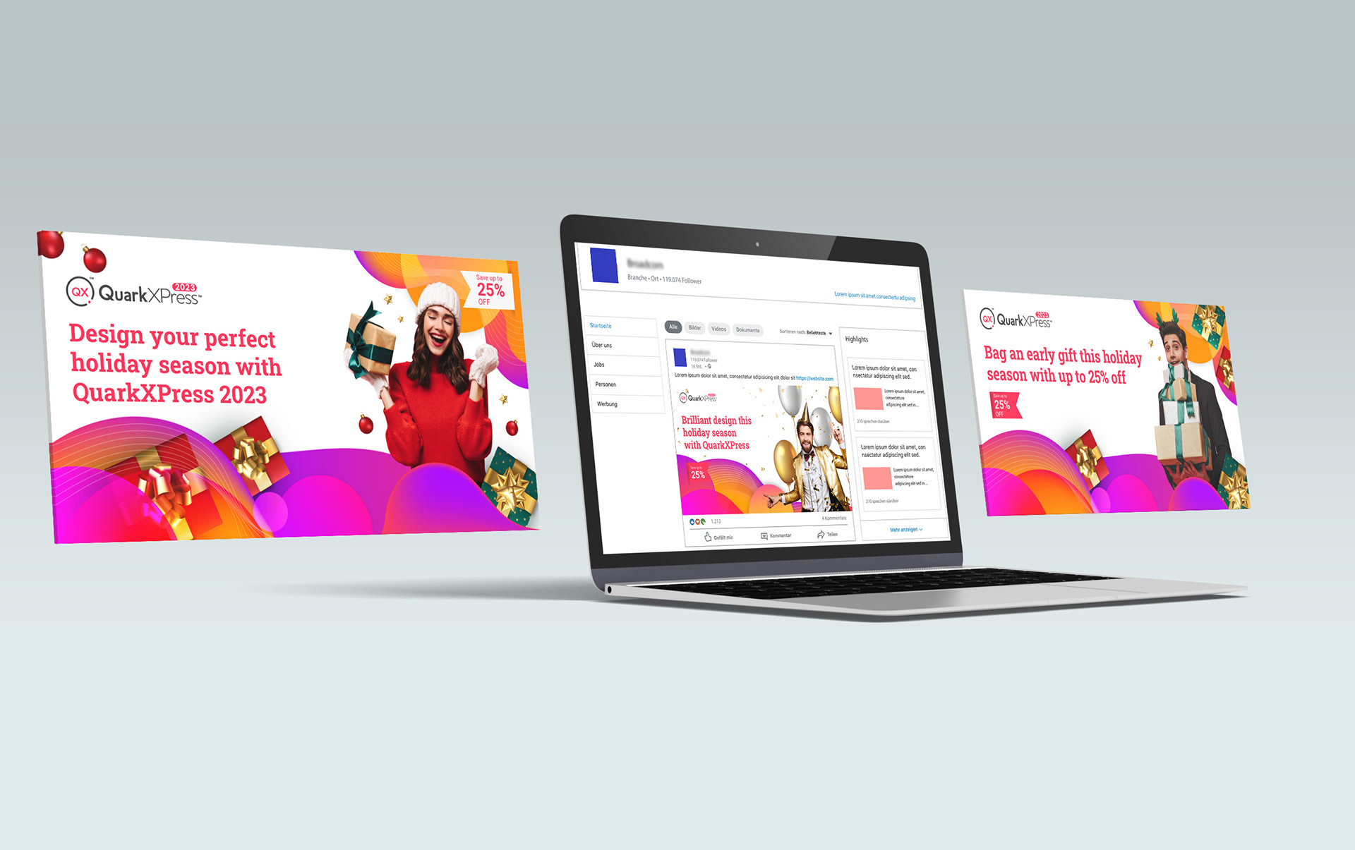 Series of digital assets, social media banners, landing page headers for Quark and QuarkXpress.